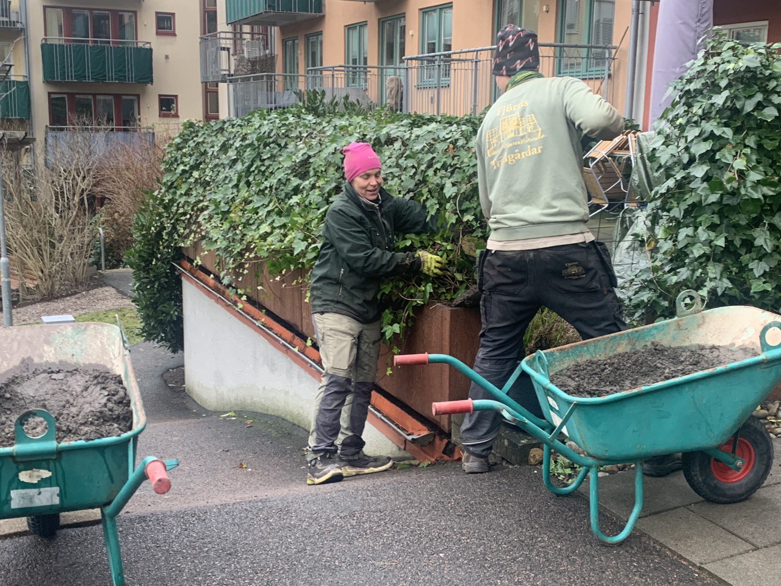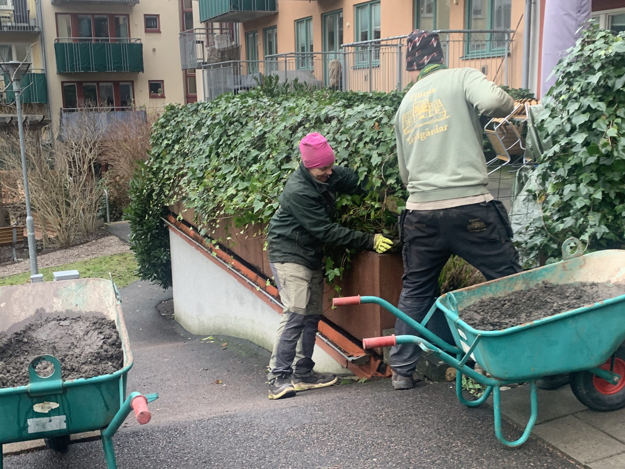 9 december 2025 Murgrönorna vårdas Frida och Filip, Tjörns Trädgårdar, vårdar våra Murgrönor. Murgrönan är Gotlands landskapsblomma. Styrelsen