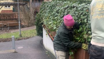 Frida och Filip, Tjörns Trädgårdar, vårdar våra Murgrönor. Murgrönan är Gotlands landskapsblomma. Styrelsen